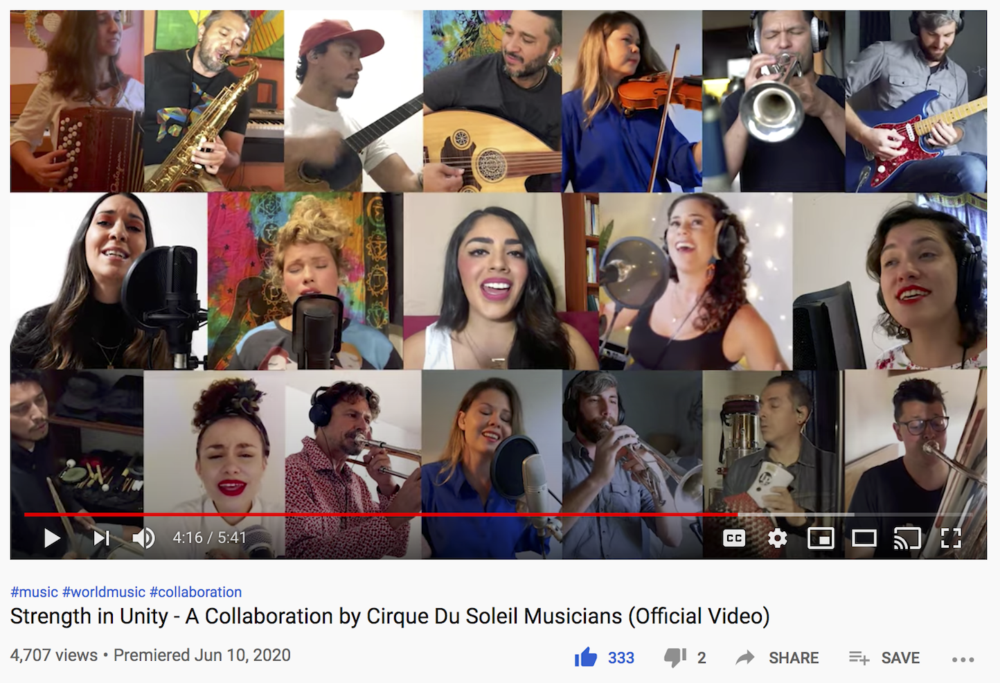 I’m honored to create with these amazing musicians from 8 different Cirque du Soleil shows across 10 countries. Special thanks to Omar Martinez for all his work! #StrengthinUnity2020